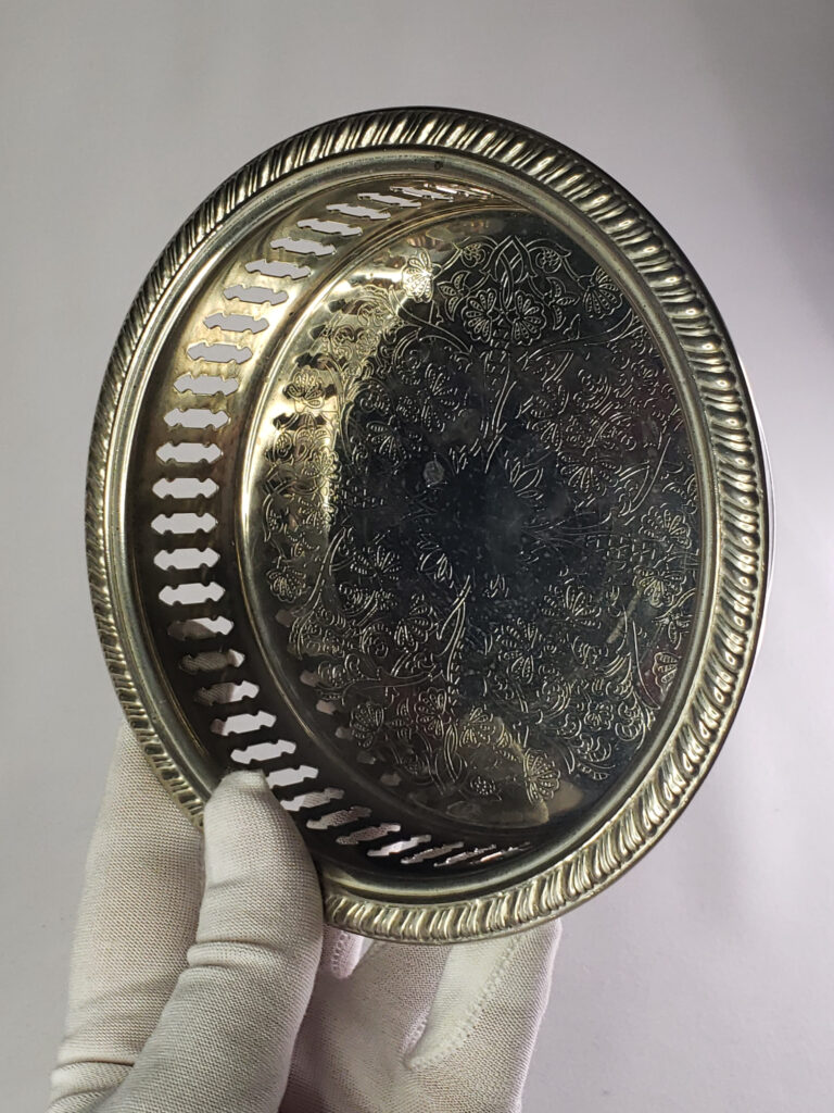 Silver-plated punched shallow bowl, Wm. A. Rogers