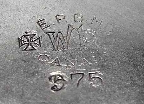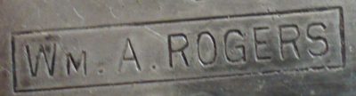 The Wm. A. Rogers Canada mark is easy to recognize: “Wm A. ROGERS Ltd“, “Wm. A. Rogers Canada” from “Toronto, Ontario” or “Niagara Falls“. Silver-plated items have “EPBM“, “AA” or “A1“, and sterling (rare) items have “925” under the logo or “STERLING“.